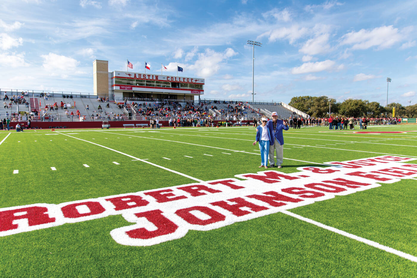 Robert M. Johnson ’53 was named a Distinguished Alumnus in 1987 and served Austin College as Chair of the Board of Trustees from 2007 until 2012. The Johnsons’ ardent support of the recently completed enhancements to Apple Stadium inspired the naming of the Robert M. and Joyce Johnson Field at Jerry E. Apple Stadium, which was dedicated as part of Homecoming 2024 festivities.