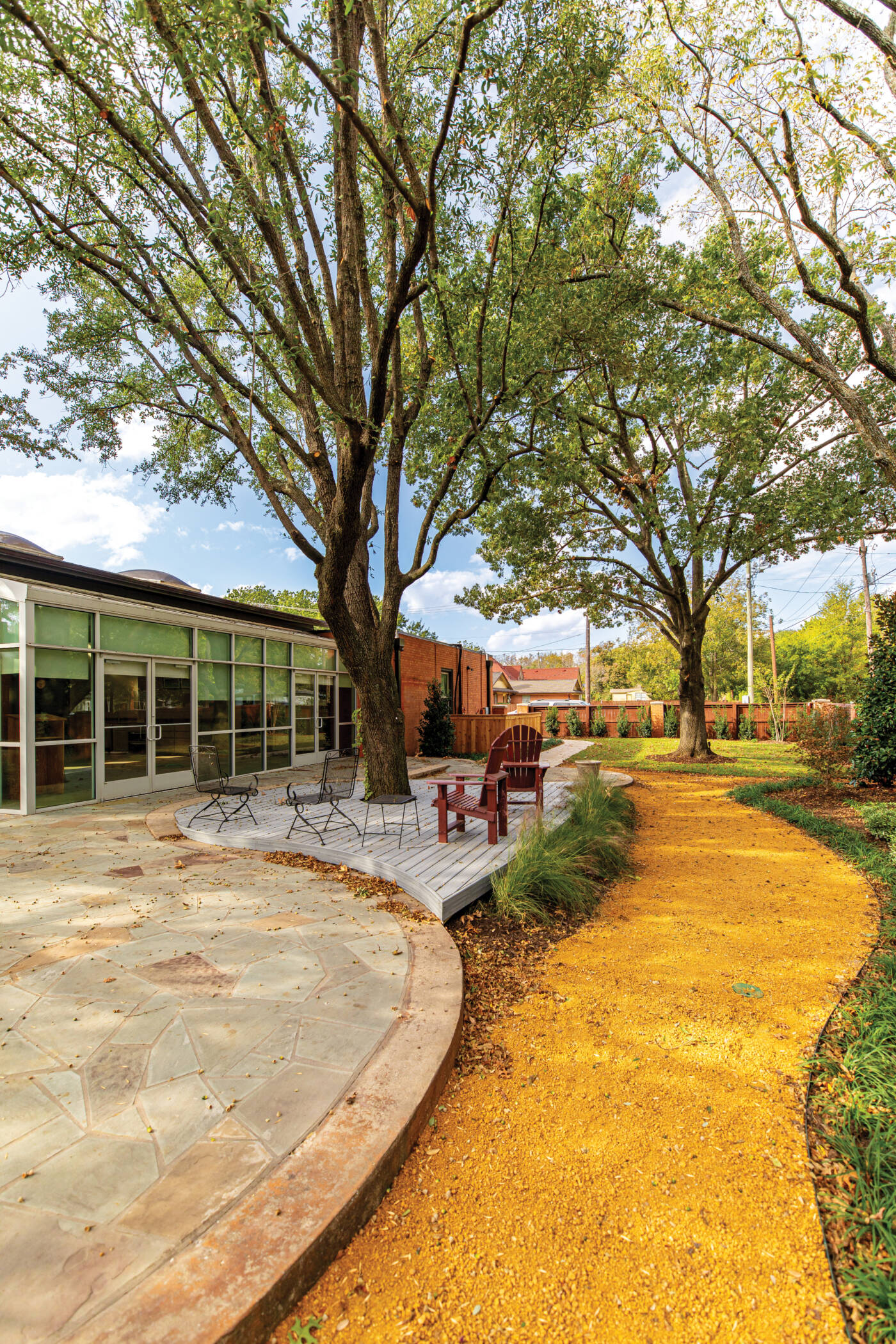 John, Jay, and John also contributed pieces from their personal art collection—six-foottall bronze and stainless steel sculptures titled “Tailfin Fetish” and “Manifold Grace” fabricated by artist Brett Chomer—to further enrich the home and its grounds.